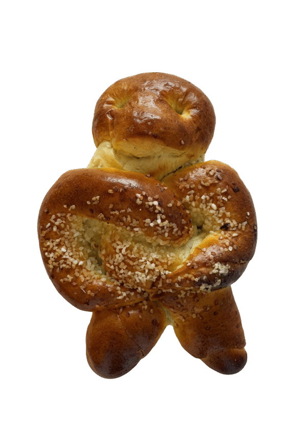 Every day, our bakers shape Grittibänzen from sweet dough and decorate them classically with hail sugar and sultanas as eyes.