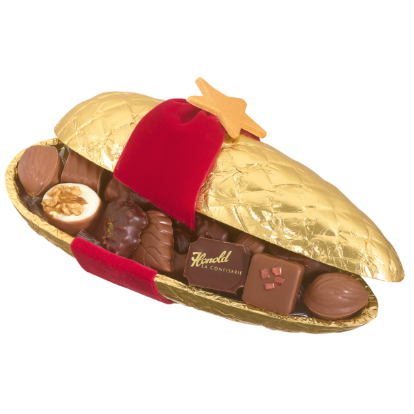 Grand Cru Chakra Lait 40% pine cone filled with assorted Pralinés Maison.