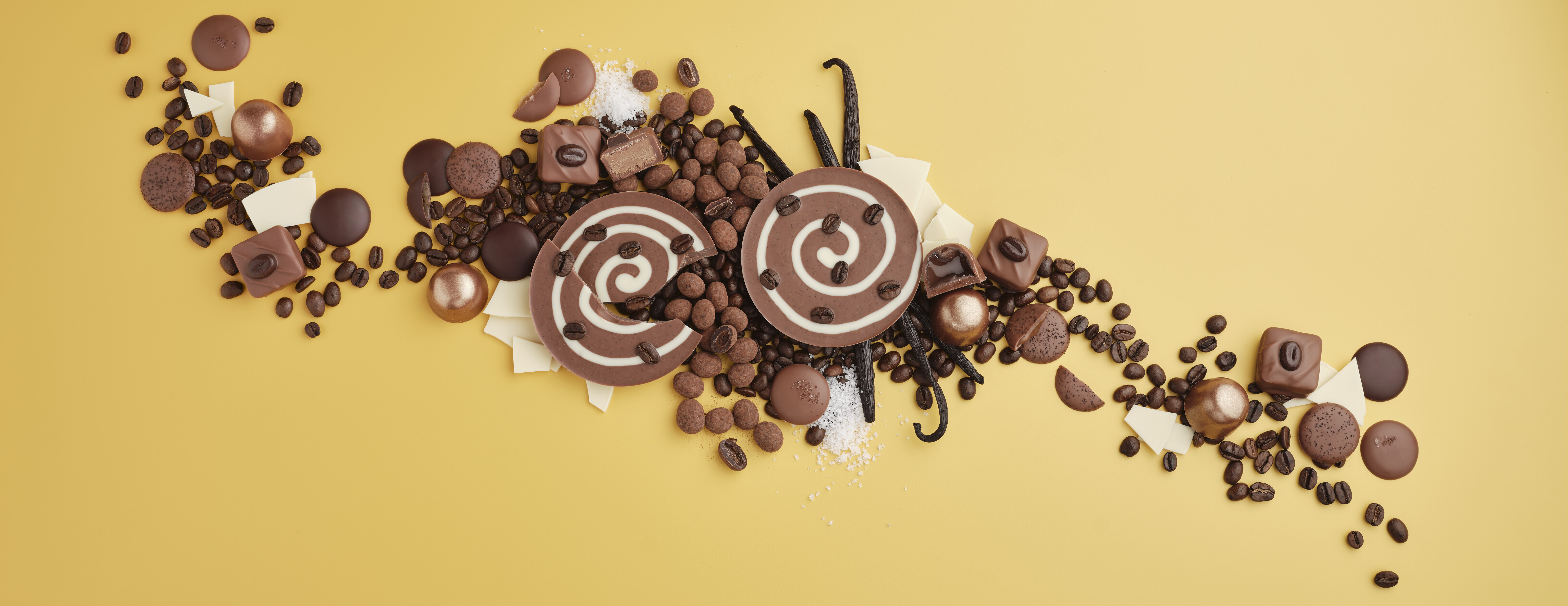 Discover reimagined classics such as our Gianduja Mocca Pralinés, delicate creations like the Petite Plaque Latte Macchiato, refined treats with a touch of liqueur such as the Sambuca Pralinés, or our crunchy and filled Jetons Automne. Each of these compositions invites you to savor autumn with all your senses.