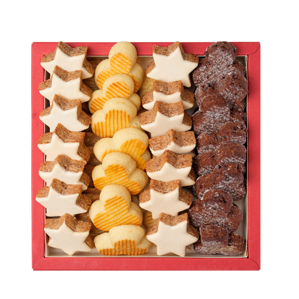 Hausgemachtes Weihnachtskonfekt mit Mailänderli, Zimtsterne, Brunsli, Spekulatius und Chräbeli.