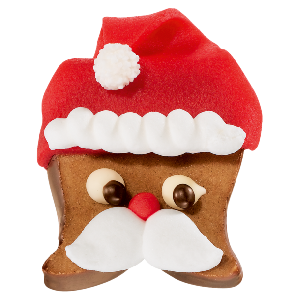 Handgefertigter Chlaus-Kopf aus Zimt-Marzipan mit roter Marzipanmütze und weissem Zuckerbart.